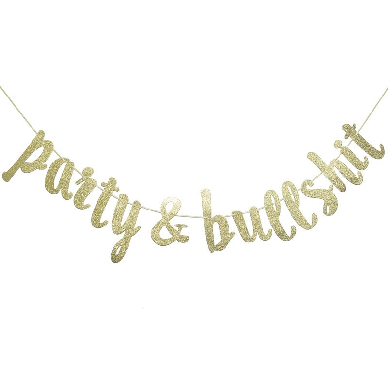 Party and Bullshit Gold Glitter Banner, Funny 21st, 25th, 30th Birthday Banner, 90's Party, Bachelorette Party, Office Party Decorations (Gold Glitter)