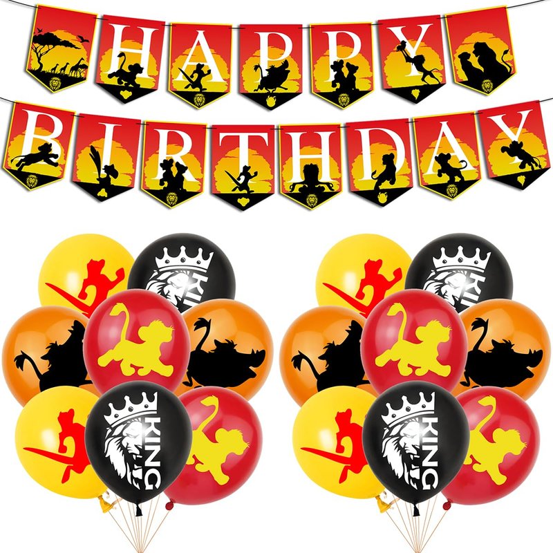 Party Decorations for Lion King, Lion Birthday Party Decorations including Birthday Banner, Cake Toppers, Balloons,for Lion King Happy Birthday Supplies