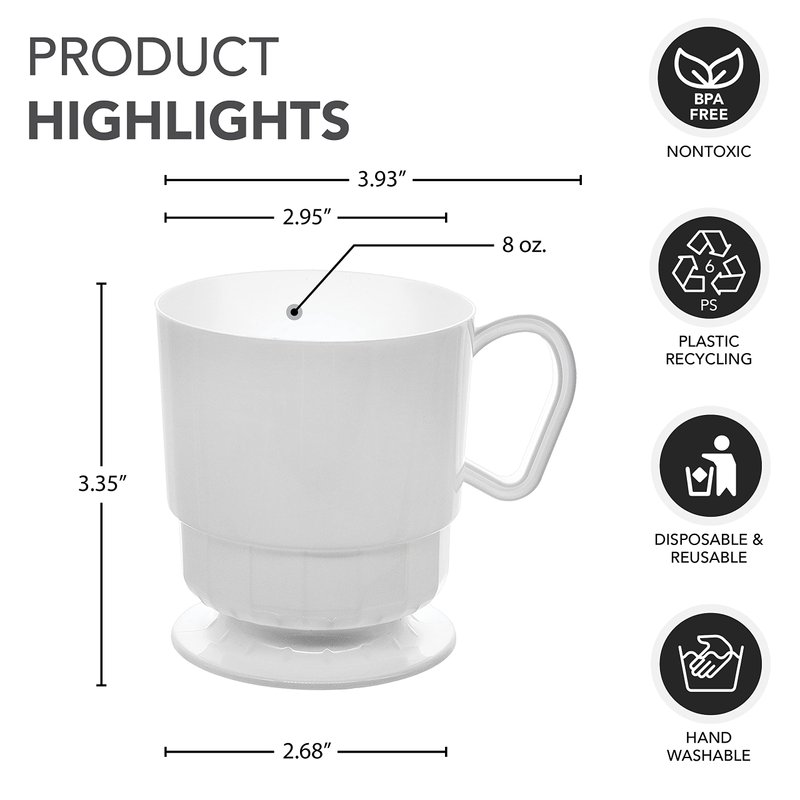 - Each package contains 10 coffee cups suitable for a wide variety of hot beverages; graceful fluted accents; footed base; full-size handles