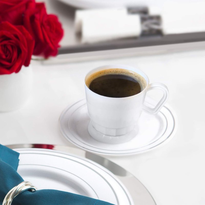 - Classic tableware styling; hand washable; reusable; disposable for quick after party clean-up; available in black, white and clear