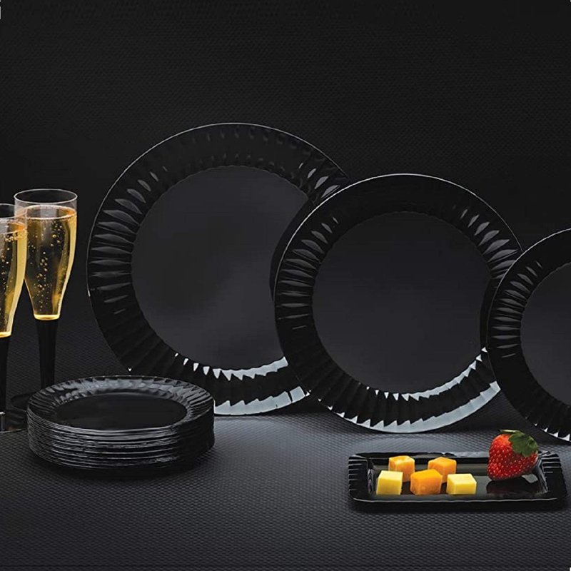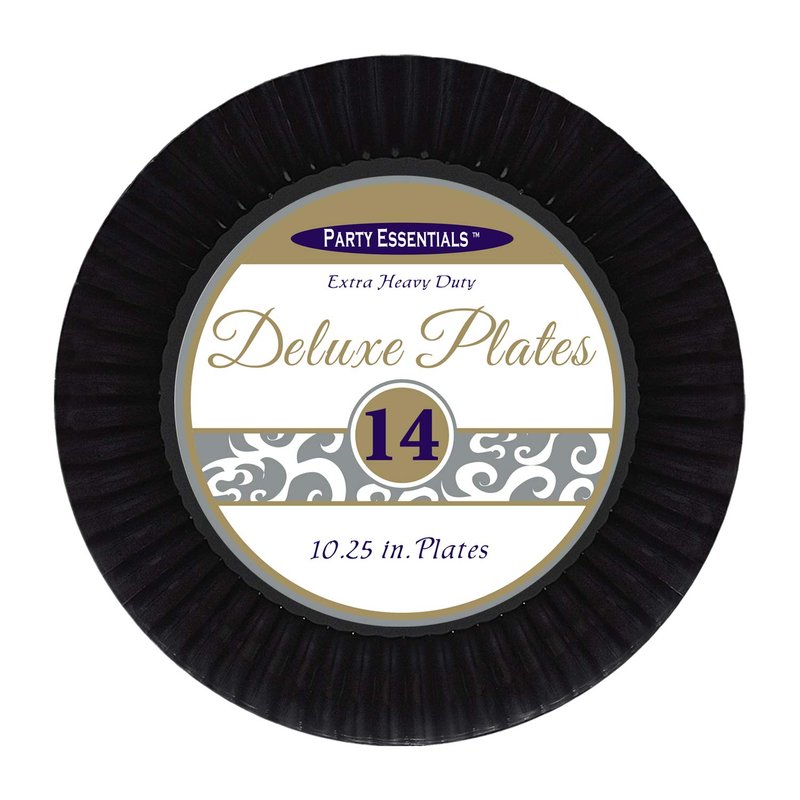 Party Essentials Deluxe Quality Hard Plastic 10.25-Inch Party/Dinner Plates, Black, 14 Count