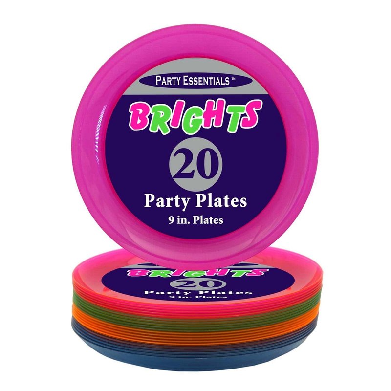 Party Essentials Hard Plastic 9-Inch Round Party/Luncheon Plates, Assorted Neon, 20-Count