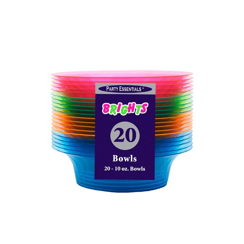 - Each package includes 20 colorful party bowls; 5 each of neon pink, neon blue, neon green and neon orange