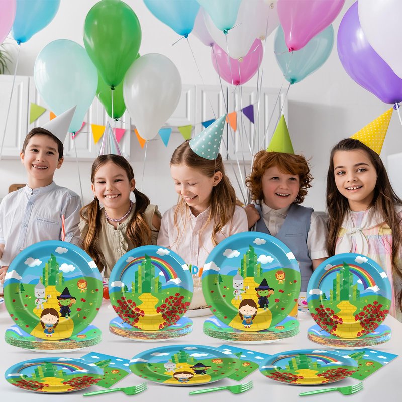 party greeting 96PCS The Wonderful Birthday Party Supplies Set Party Tableware Kit Themed Party Dinnerware for Kids Adult Birthday Baby Shower Serve 24