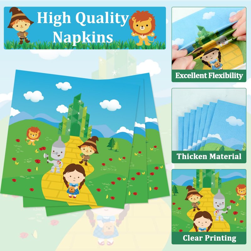 - Reliable material: The wonderful party dinnerware is made of quality paper, no smell, well-printed, oil-proof and with great bearing, disposable party plates are sturdy while themed party napkins are soft and absorbent.