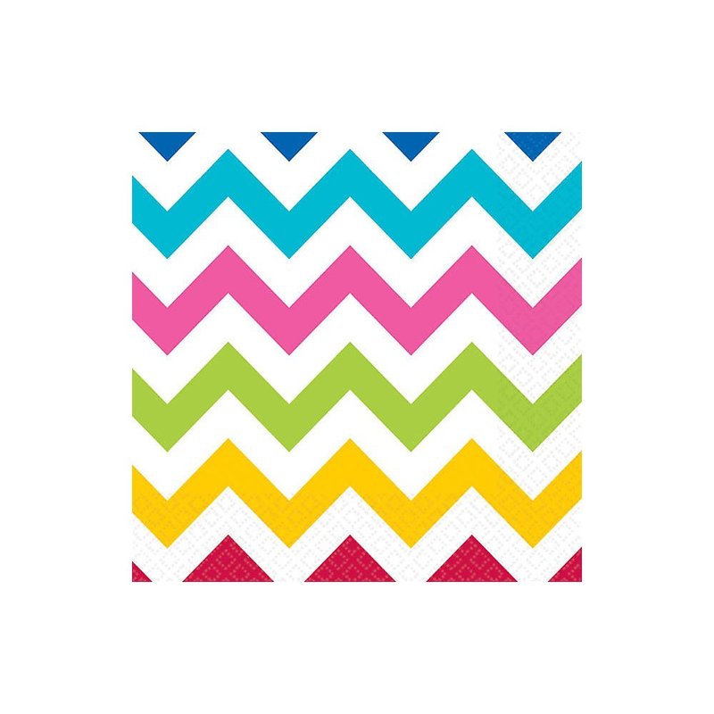 Party Perfect Disposable Chevron Print Beverage Napkins Tableware, Multicolored, Paper, 5" x 5", Pack of 16
