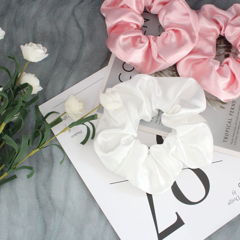 - [Contain] 10 bridesmaid Scrunchies. Include 1 white bride satins scrunchie and 9 pink Scrunchies Perfect for Weddings or Bridesmaid Gifts.