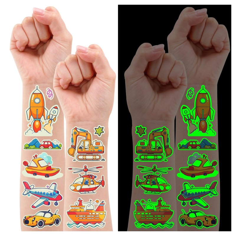 - 【145 Styles Glow Transportation Theme Tattoos for Kids】A new transportation collection of tattoo stickers for kids. Even at a party with lots of friends, these glow tattoos will make you unique and glow in the crowd! A set of glow transportation tattoos can meet the whole kids party need!