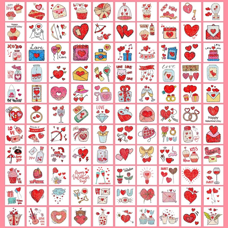 - 【Glitter Valentines Tattoos for Kids Party Decorations】204 Glitter tattoos designed exclusively by Partywind, incorporating the most popular Valentine’s day elements for kids. No repeating patterns. These cute elements of our fake tattoos include Heart, Flowers, Rose, Lips, Cake and other favorite patterns that kids like!