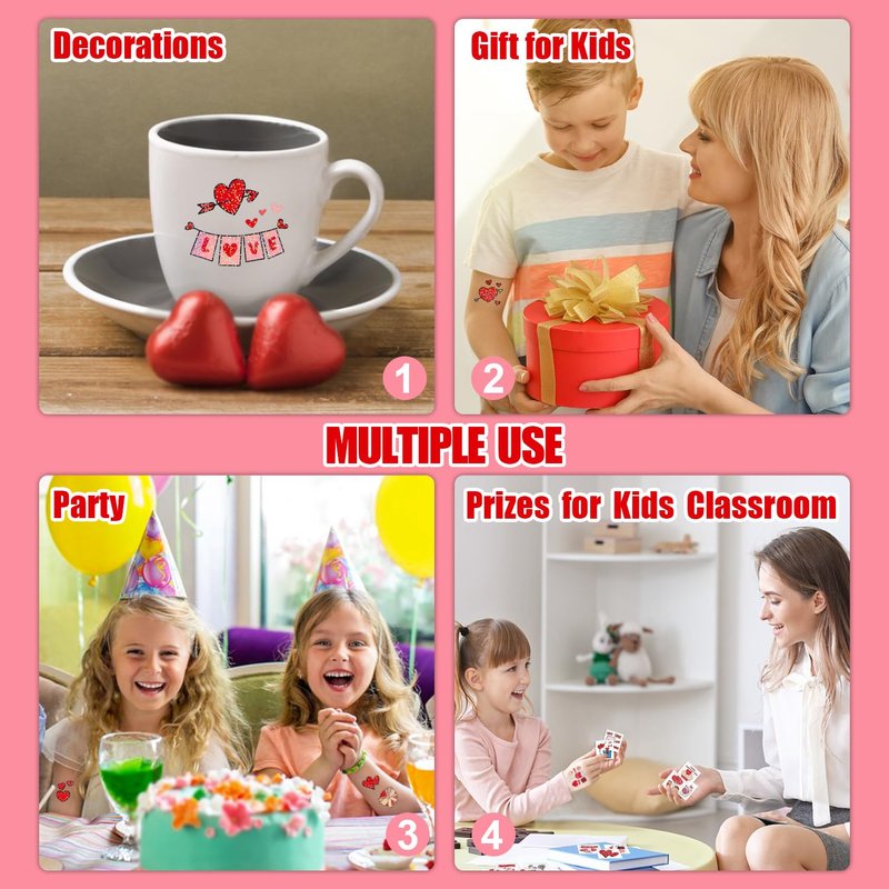 - 【Fun for Your Valentine’s Day】These tattoos stickers are suitable for kids Valentines party supplies, party favors, party decorations, kids classroom prizes, goodie bag fillers, games, and so on. Give your kids and guests a big surprise!