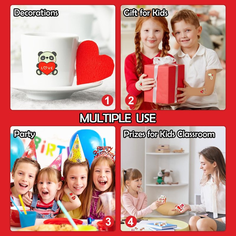 - 【Fun for Valentines Party】These tattoos stickers are suitable for kids to learn how to express their love and thanks! Meanwhile can be a good choice for Valentines party supplies, party favors, party decorations, Valentines day prize for kids classroom, goodie bag fillers, games, toys, and so on. Suitable for boys, girls, baby, teens, children.