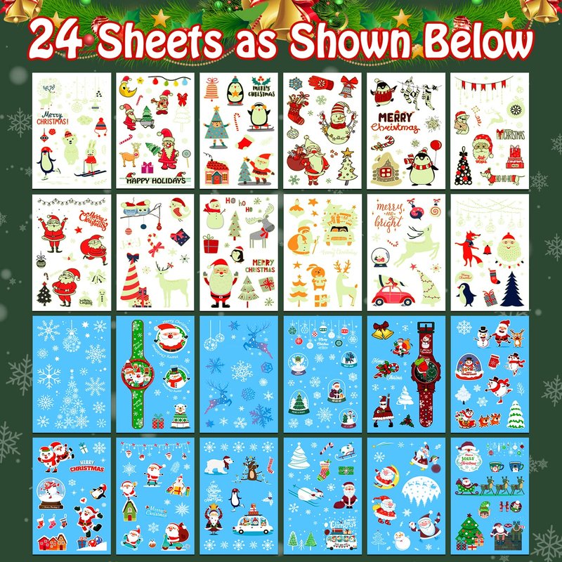 24 sheets (275 styles) luminous Christmas temporary tattoos for kids boys girls.
