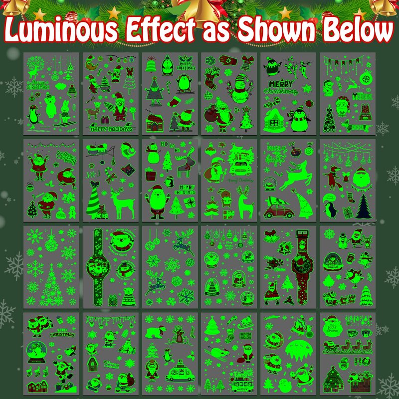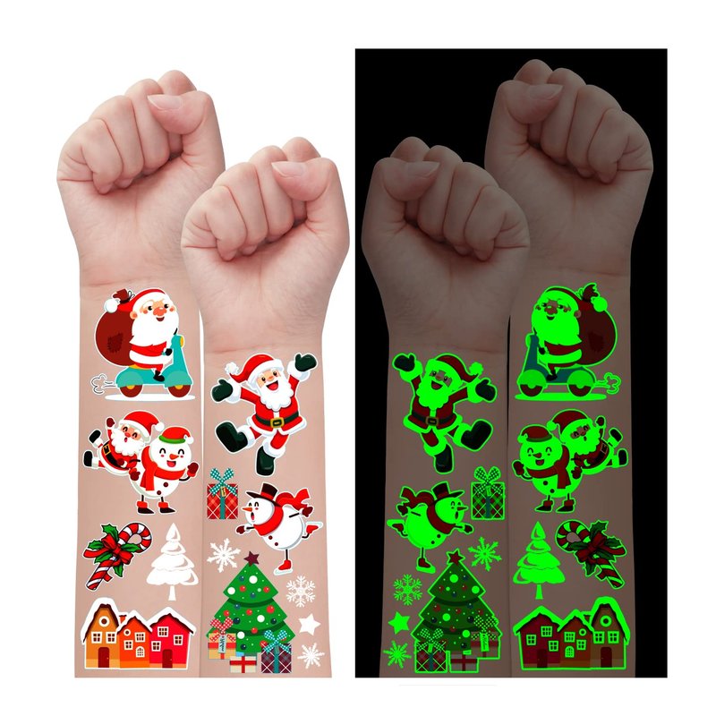 • 【Luminous Tattoos for Christmas Party Favors】Package include 24 sheets (275 styles) Christmas kids tattoos. Using our tattoos to make you glow at night and special at party. Our super fun tattoos contain various glow patterns such as Santa, Snowman, Reindeer Xmas tree, bell, and other Christmas - related patterns. Kids will fall in love with Christmas!