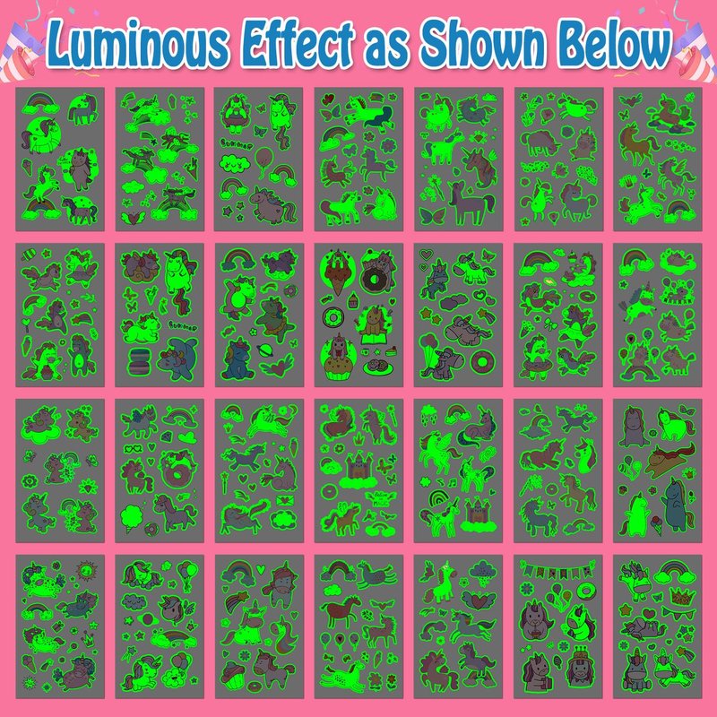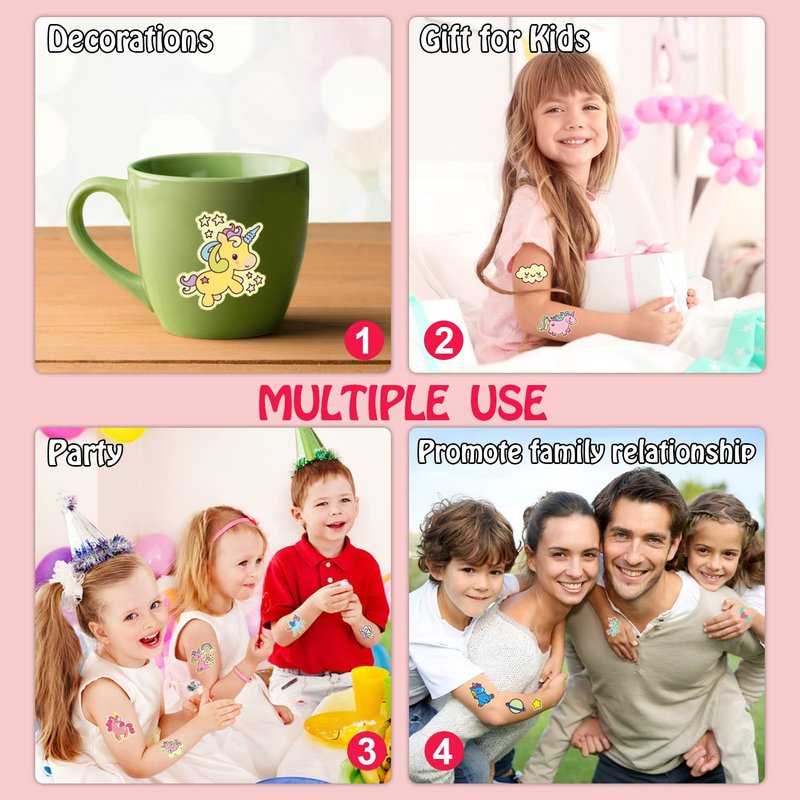 - 【Applicable Place】These fake tattoos are suitable for kids party supplies, party favors, birthday decorations, glow party, games, goodie bag stuffers and so on. You can also apply them to some smooth objects, such as glass, tile, water bottle, stainless steel, plastic, mobile phone case and so on.