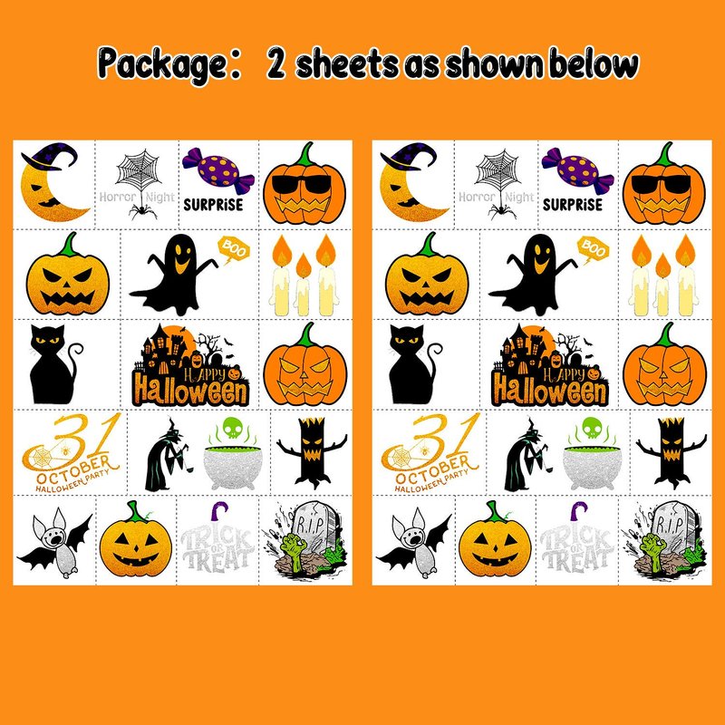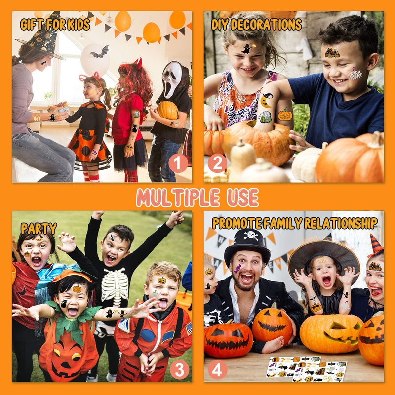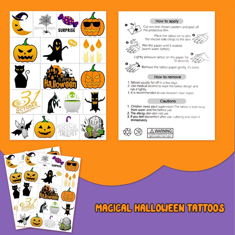- 【Multi-purpose】There are many ways to use our Halloween theme temporary tattoos, you can apply them on Halloween party decorations, party favors, party supplies, party games, goodie bags, DIY decorations, body art and so on.
