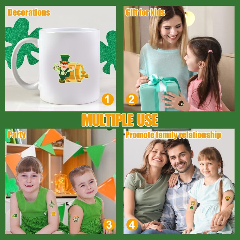 - 【Glow and Waterproof Fake tattoos】These glow St Patrick's Day tattoos will attract children's attention! Our temporary tattoos undergo rigorous party testing, the fake tattoos will not come off easily and stay on skin all day or more. Special glow accessories for Saint Patrick's Day!