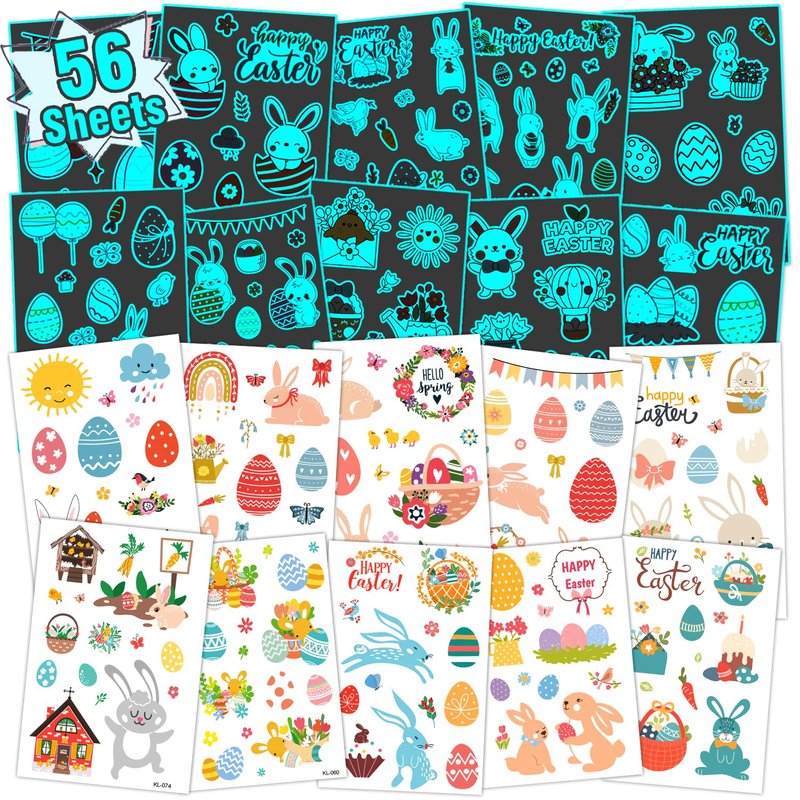 - 【56 Sheets Luminous Tattoos for Kids Easter】New styles luminous blue Easter tattoos for kids! Even at a party with lots of people, these glow tattoos will make you unique in the crowd! Cute patterns includes Easter eggs, rabbits, chicks, carrots, baskets, etc.