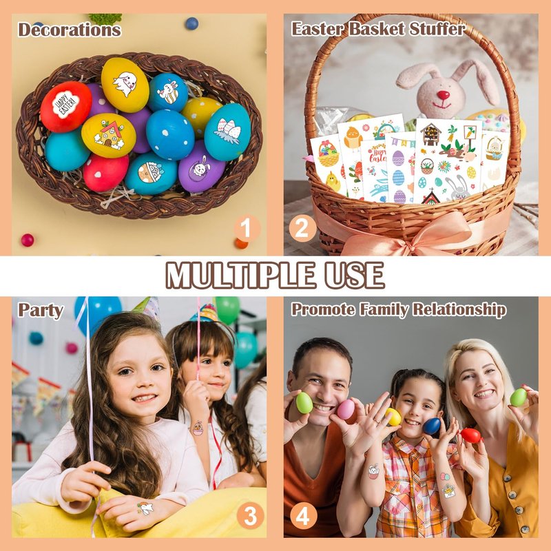 - 【Applicable Place】These luminous temporary tattoos are suitable for Easter party decorations, party supplies, party favors, goodie bag fillers, basket stuffers, egg hunt games, prizes, decor, toys and so on. These tattoos are suitable for kids as a reward for an egg hunt game. Let's enjoy the Easter together!