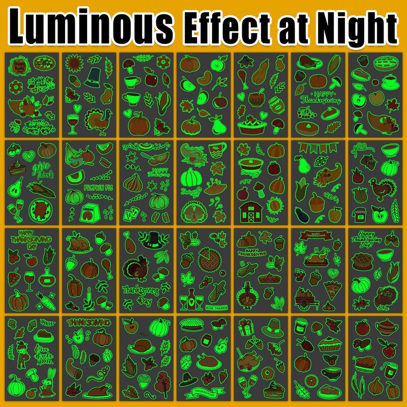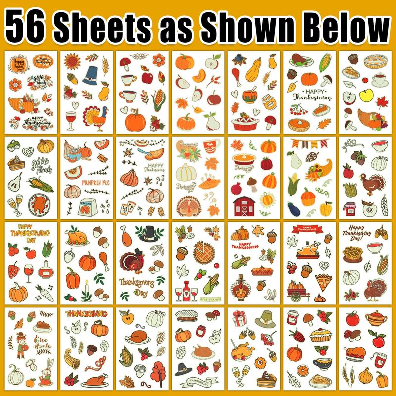 Partywind 56 Sheets (565 Styles) Luminous Thanksgiving Temporary Tattoos, Fall Autumn Party Supplies Decorations for Kids Goodie Bag Stuffers, Turkey Pumpkins Decor for Thanksgiving Party
