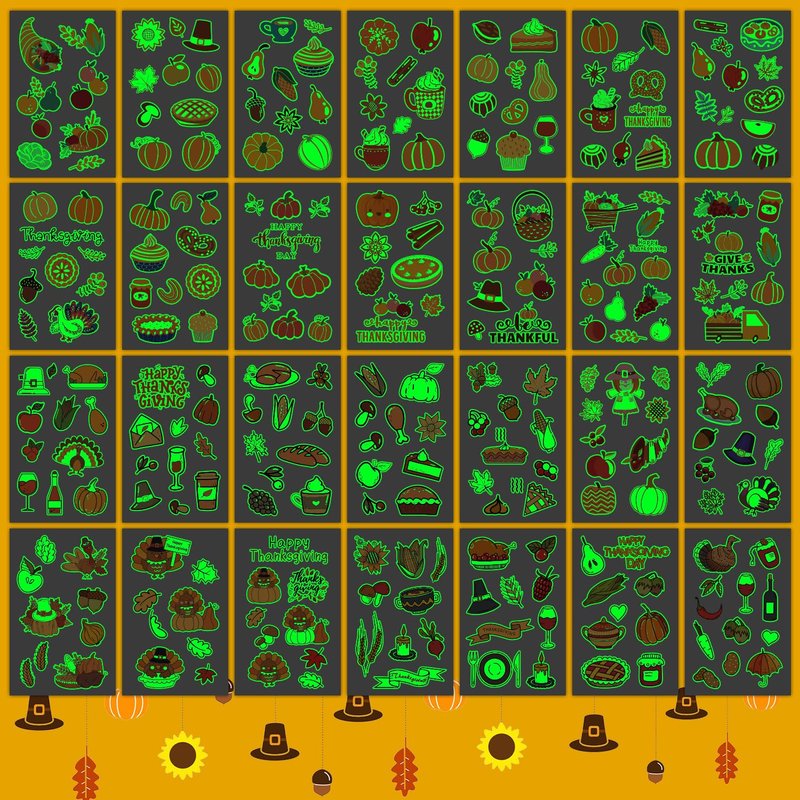 56 Different sheets glow Thanksgiving temporary tattoos for kids boys girls.