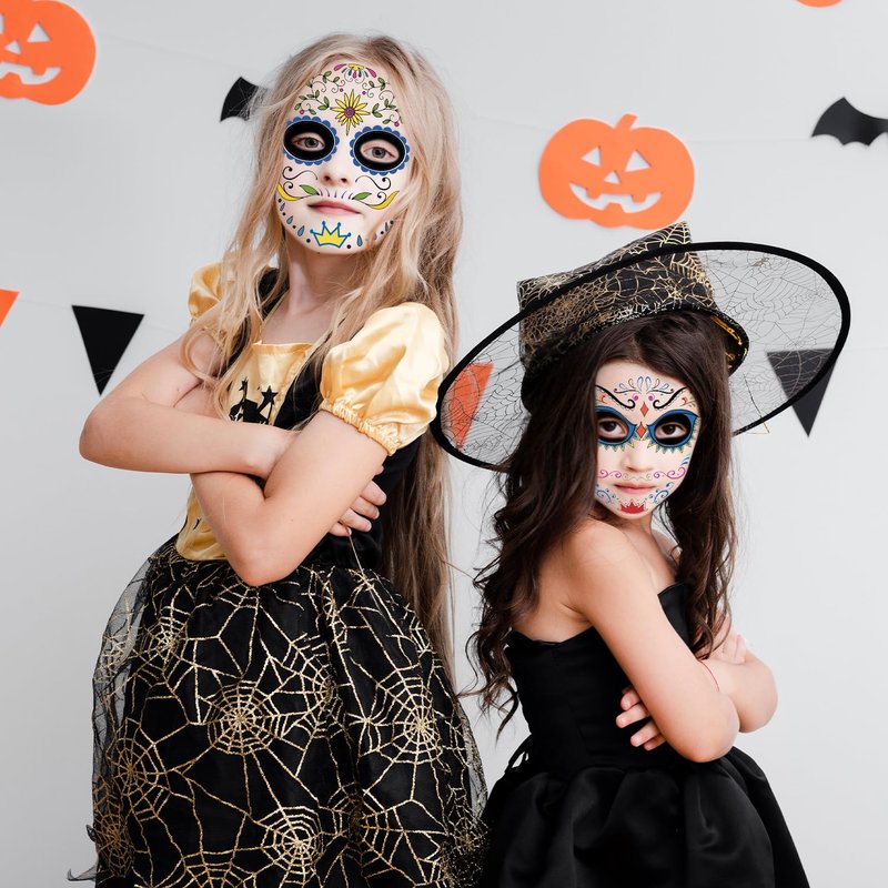 - 【Party Supplies for Day of the Dead】These temporary face tattoos are suitable for Halloween party, Day of The Dead (Dia De Los Muertos), Halloween costume, scare make up for adults, kids, boys, girls, night party and so on. Are you looking for the fun party supplies? Partywind temporary face tattoos is your good choice, which will add the fun of parties.