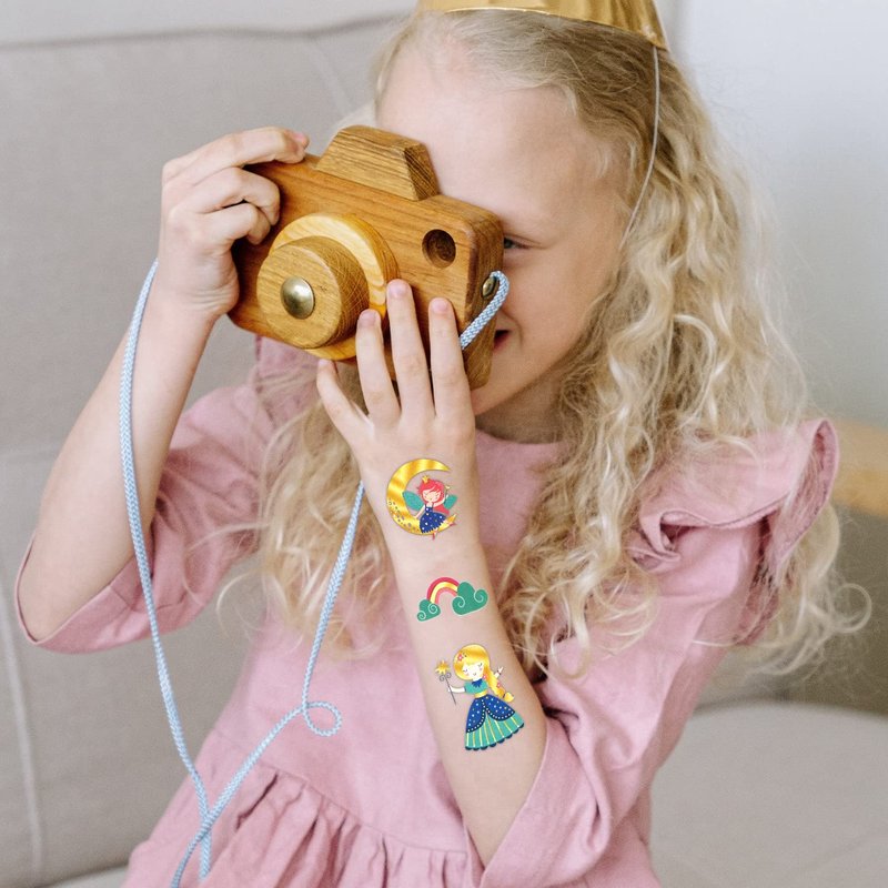 - 【Easy to Apply and Remove】Choose the tattoo you like and then wet the fake tattoo with water. Wait a few minutes to have a glitter princess tattoos. It can be removed by rubbing alcohol, body oil, and olive oil when you want to remove the tattoo.