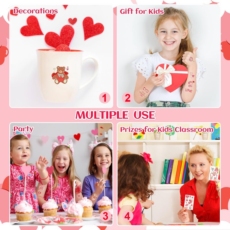 - 【Applicable Place】These tattoos stickers are suitable for kids to learn how to express their love and thanks! Meanwhile can be a good choice for Valentines party supplies, party favors, party decorations, Valentines day surprise or prize for kids classroom, goodie bag stuffers, games, toys, and so on. Suitable for boys, girls, baby, teens, children.
