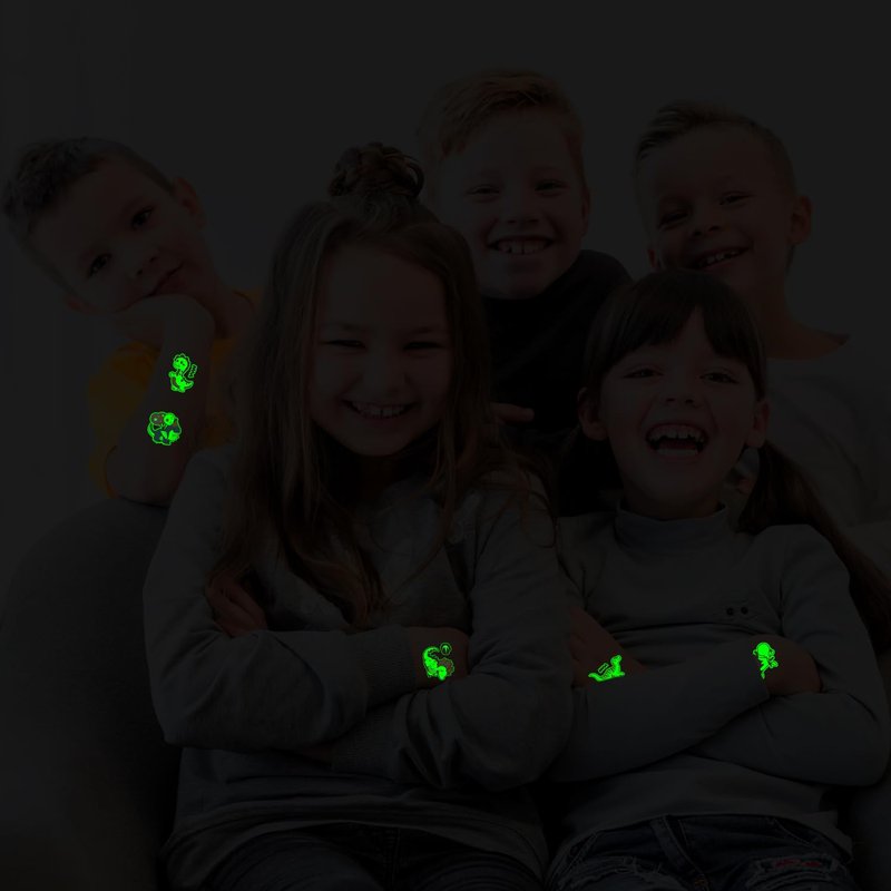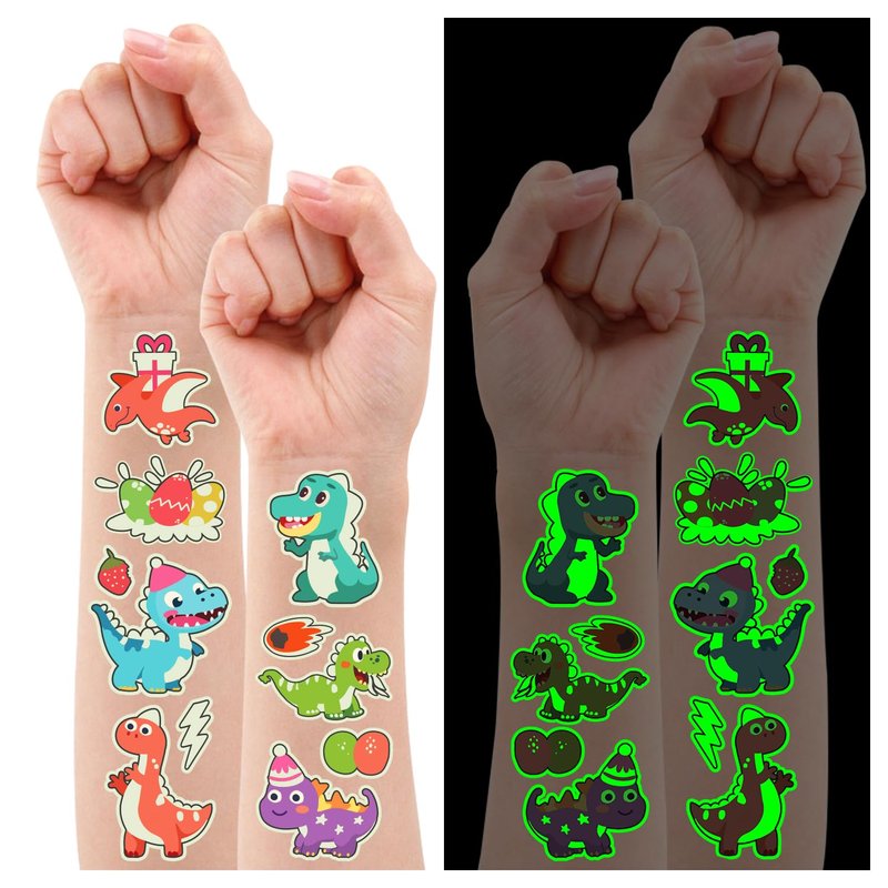 - 【155 Styles Glow Dinosaur Tattoos for Kids】A new dinosaur collection of tattoo stickers for kids. Even at a party with lots of friends, these fake tattoos will make you unique and glow in the crowd! A set of glow dinosaur tattoos can meet the whole kids party need!