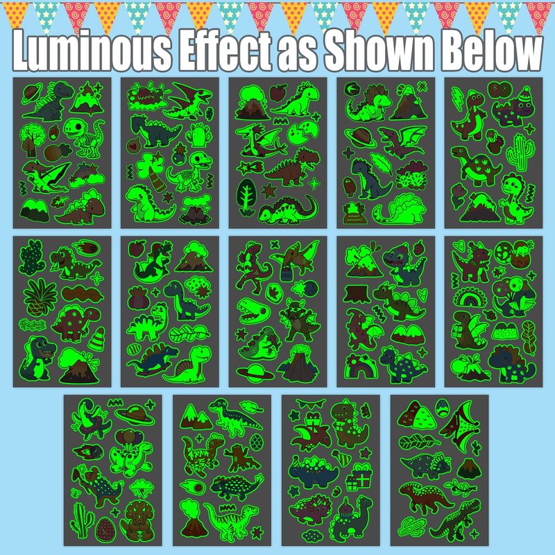 - 【Applicable Place】These glow tattoos stickers are suitable for dinosaur birthday party decorations, boys party supplies, party favors, goodie bag stuffers, games, prizes, toys, etc. You can apply them on some smooth objects, such as glass, tile, water bottle, stainless steel, plastic, mobile phone case, etc.