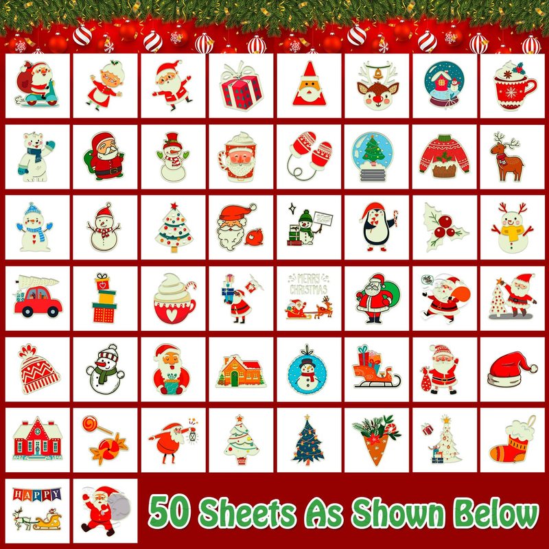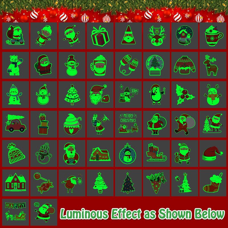 50 Different sheets cute luminous Christmas temporary tattoos for kids boys girls. (Individually Wrapped Sheets)