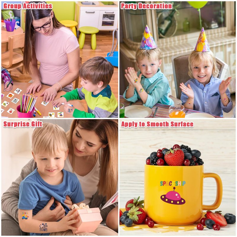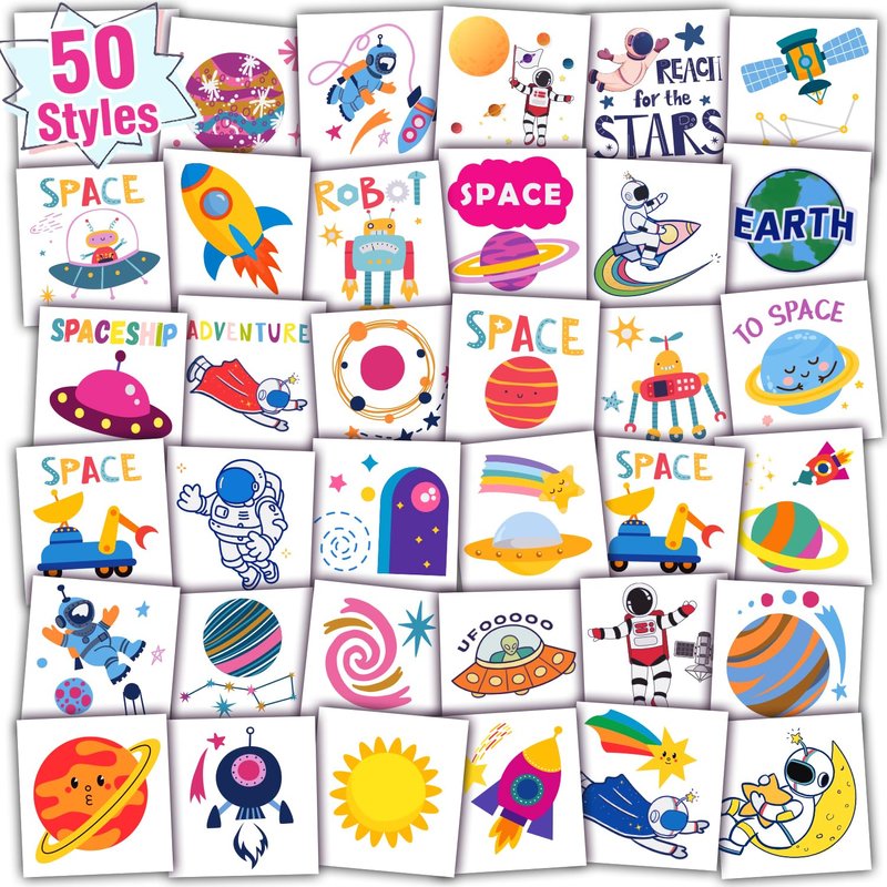 - 【Creative Space Party Supplies】These tattoos stickers are suitable for space party supplies, party favors, party decorations, goodie bag fillers, decor, games, toys, kids stocking stuffers, easter basket stuffers and so on. Suitable for boys, girls, baby, children.