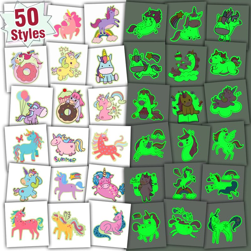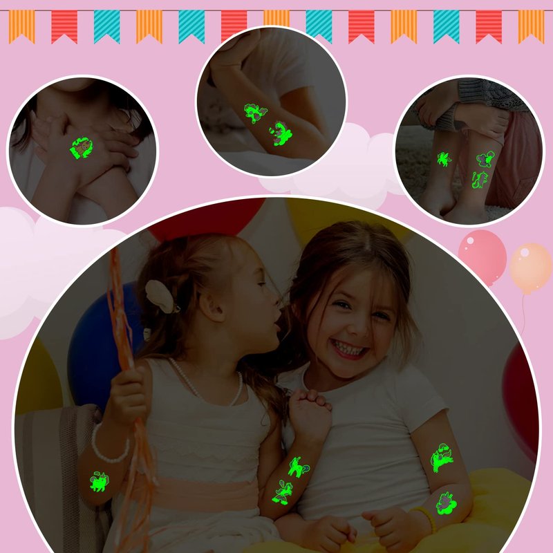 - 【Exclusive Luminous Designs & No Duplicates】50 Luminous tattoos designed exclusively by Partywind, incorporating the most popular elements for kids. No repeating patterns. Good choice as party supplies to give your kids and guest a big surprise!