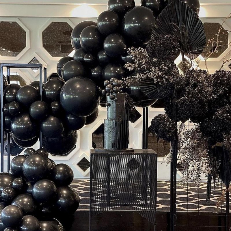 - 100 PCS BLACK BALLOONS DIFFERENT SIZES: Package includes 36 inch balloon (1 pc), 18 inch balloons (3 pcs), 12 inch balloons (20 pcs), 10 inch balloons (20 pcs), 5 inch balloons (56 pcs)