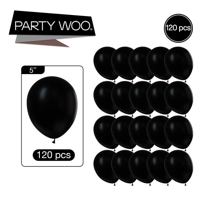 PartyWoo Black Balloons, 120 pcs 5 Inch Matte Black Balloons, Black Balloons for Balloon Garland or Balloon Arch as Party Decorations, Birthday Decorations, Retirement Party Decorations, Black-Y18