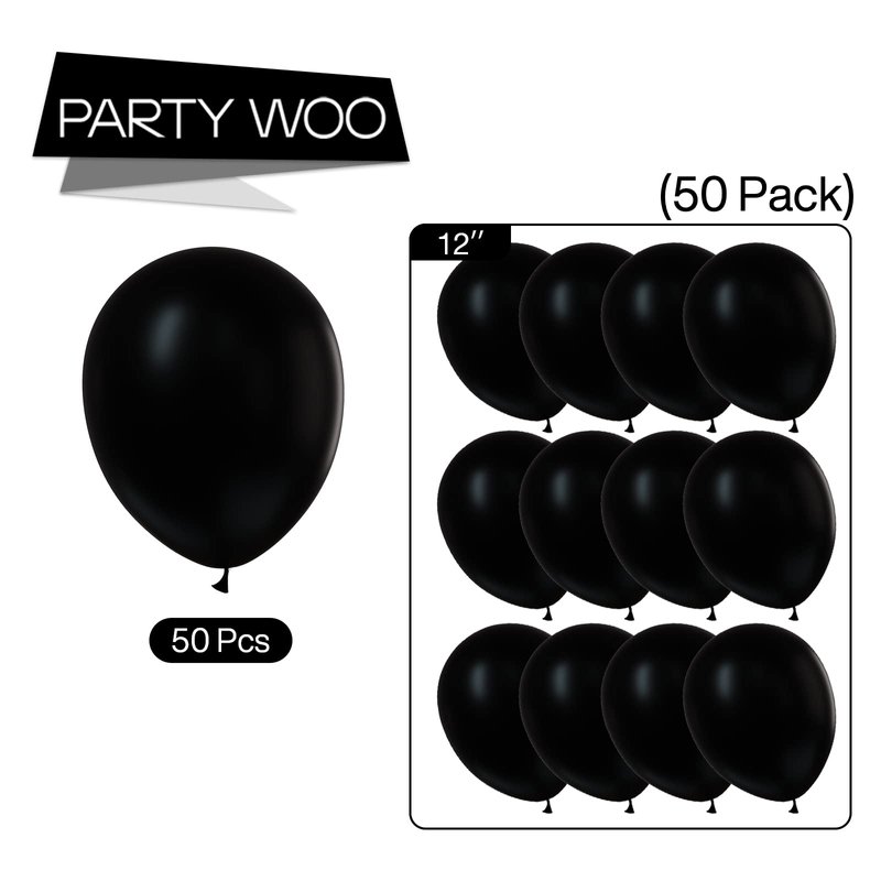 PartyWoo Black Balloons, 50 pcs 12 Inch Matte Black Balloons, Black Balloons for Balloon Garland or Balloon Arch as Party Decorations, Birthday Decorations, Retirement Party Decorations, Black-Y18