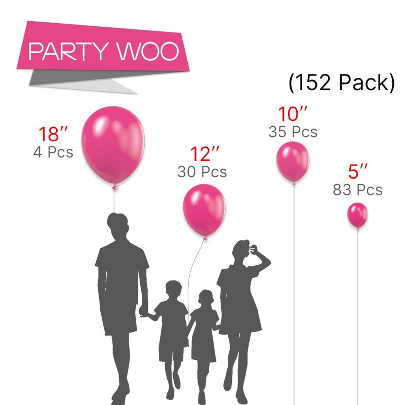 PartyWoo Hot Pink Balloons 152 pcs Magenta Balloons Dark Pink Balloons Different Sizes Pack of 18 12 10 5 Inch Balloon Arch Kit Balloon Garland for Valentine's Day Princess Party Decorations Pink-Y12