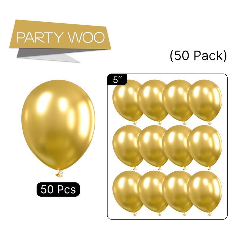PartyWoo Metallic Gold Balloons, 50 pcs 5 Inch Gold Metallic Balloons, Gold Balloons for Balloon Garland or Balloon Arch as Party Decorations, Birthday Decorations, Baby Shower Decorations, Gold-G101