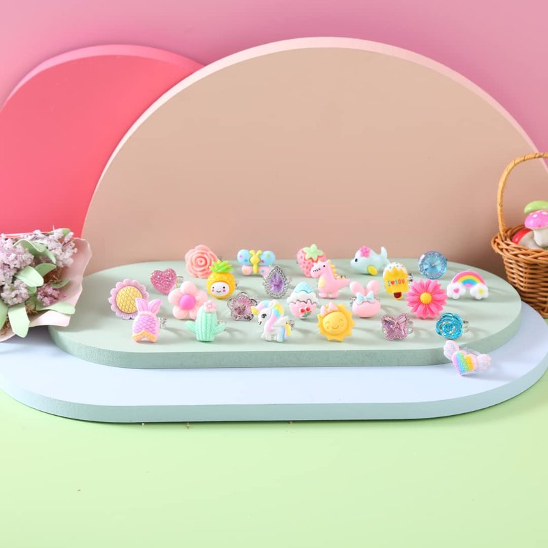 - 【Unique Design Rings for Girls】There are 24PCS cute little girl jewelry rings in box. No duplication, which will make the little girl more excited and mesmerized. All these girl rings are with vibrant color and lovely design, there are sunflower, dolphin, mermaid, unicorn, rainbow, fruit, dinosaur, ice cream and so on. No duplication, shown as picture. Great gifts idea to your favorite princess.