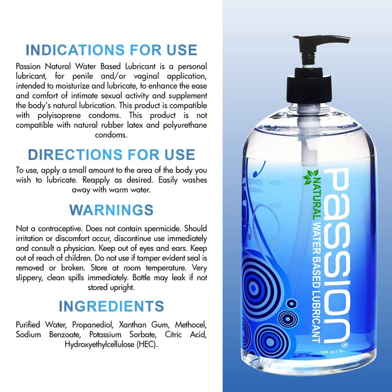 - CONDOM COMPATIBLE: Naturally, Passion water-based lubricant also works with common condom types as well latex, polyurethane, and polyisoprene. Great for any surface requiring a silky smooth entry for maximum pleasure.