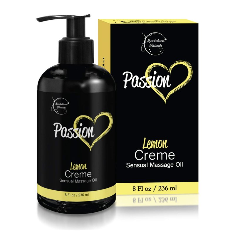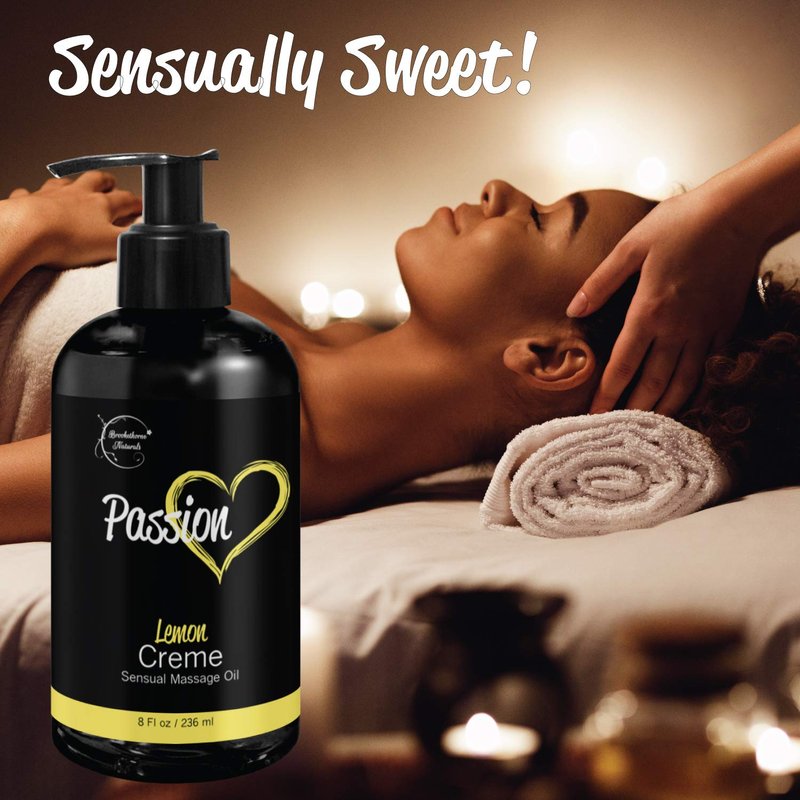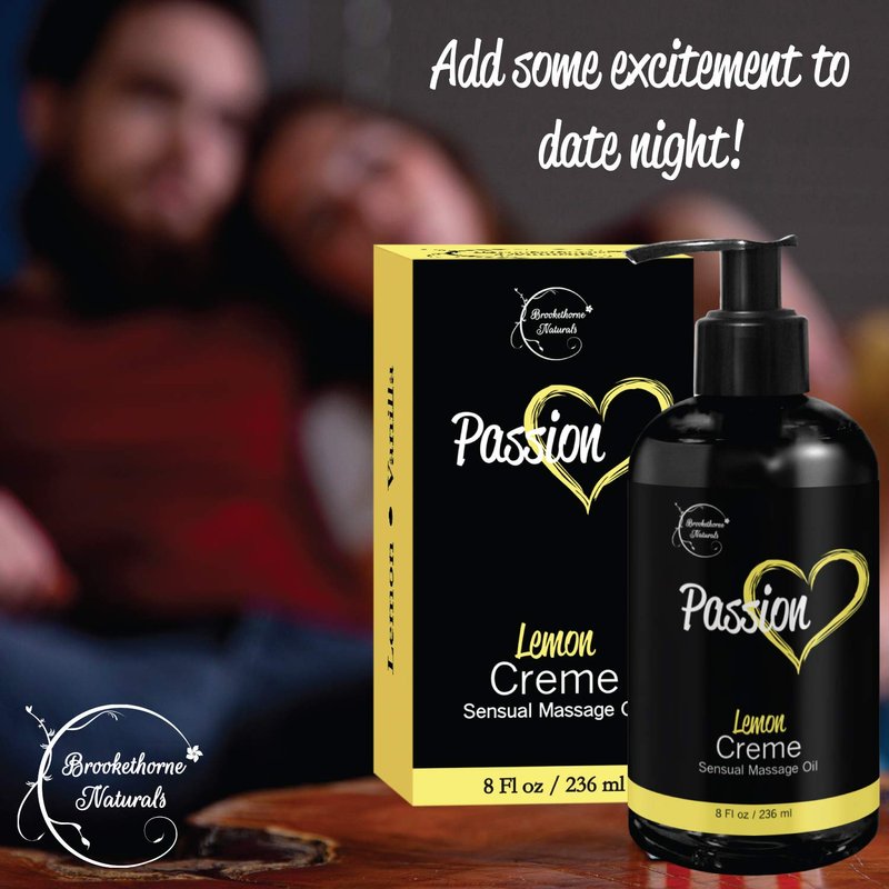 Passion Sensual Massage Oil for Couples – All Natural, Lemon Crème Scent with Almond Oil & Jojoba Oil. Natural Body Oil for Dry Skin. Massaging Oil for Romance & Relaxation – 8oz