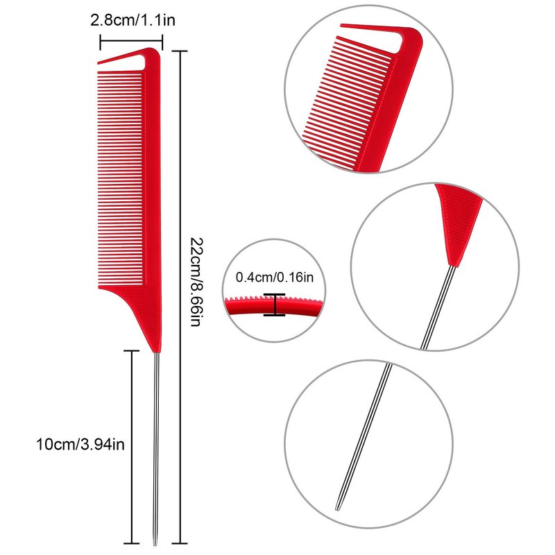 - Rat tail handle design: the teasing combs are designed with a long and thin stainless steel pintail, which is practical for styling, parting, back combing, post styling and hair coloring