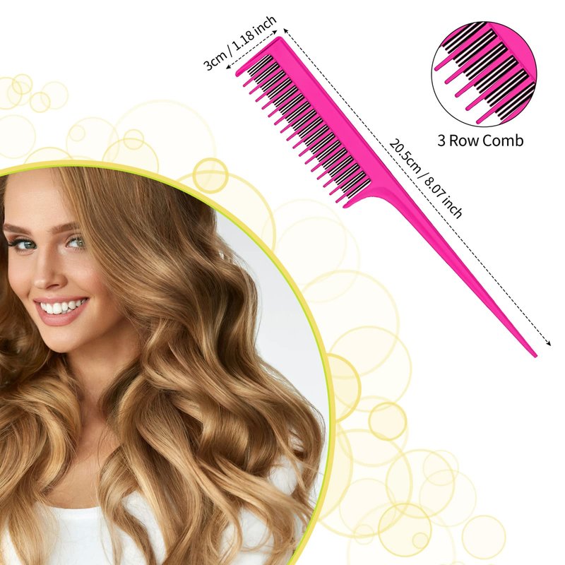 Patelai 3 Pieces Hair Styling Comb Set, Includes Hair Brush Teasing Fluffy Hair Brush, Rat Tail Comb Teasing Comb and Triple Teasing Comb for Women Back Combing Hair (Rose Red)