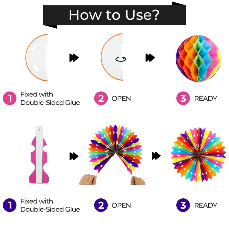 - 𝐄𝐀𝐒𝐘 𝐓𝐎 𝐔𝐒𝐄 - Without complicated and frustrating Paper Pompoms, you can quickly prepare your party scene.