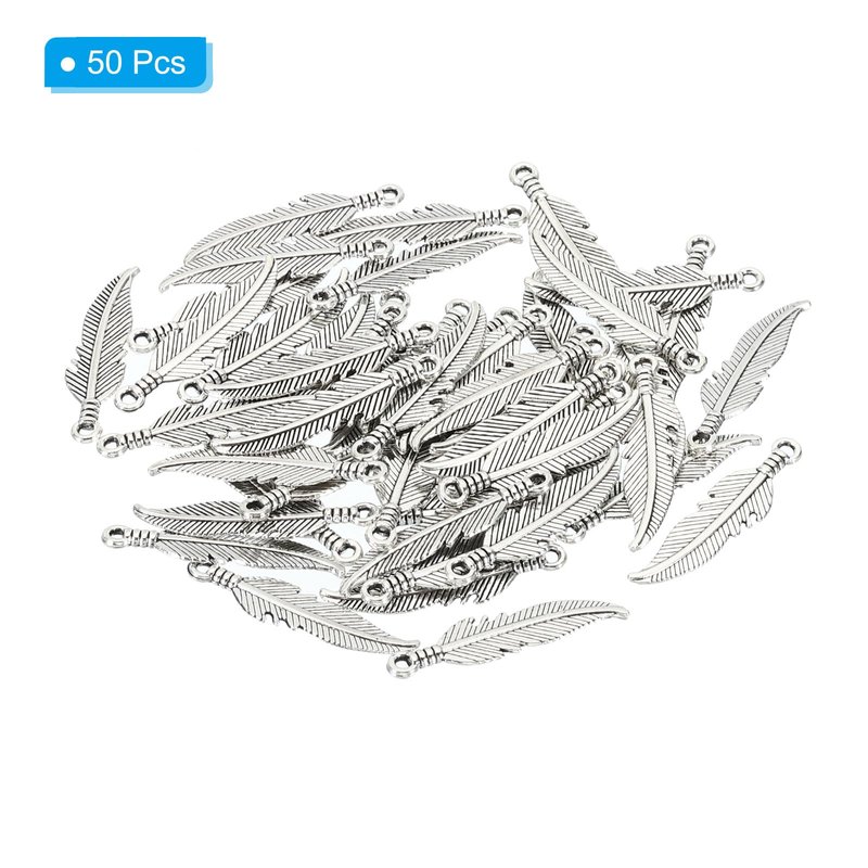PATIKIL Feather Charm, 50Pcs Mini Feather Pendant Charm Bulk Metal DIY Dream Catcher for Jewelry Making Bracelets Earrings Necklace Crafts Keychain, Silver Tone