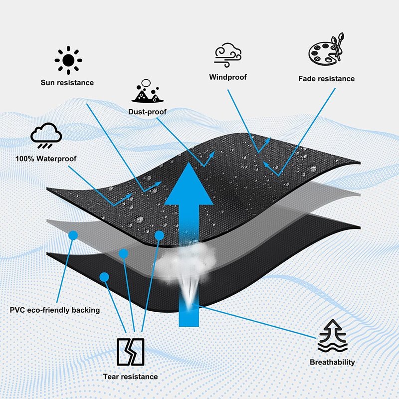 - 【Well-designed Structure】: The patio cover designed with an adjustable tighten rope and 4 buckle straps to provides patio sofa cover a customizable fit and secure your table and chairs cover on the windiest days.Keep your furniture being safe, clean and dry in harsh environments