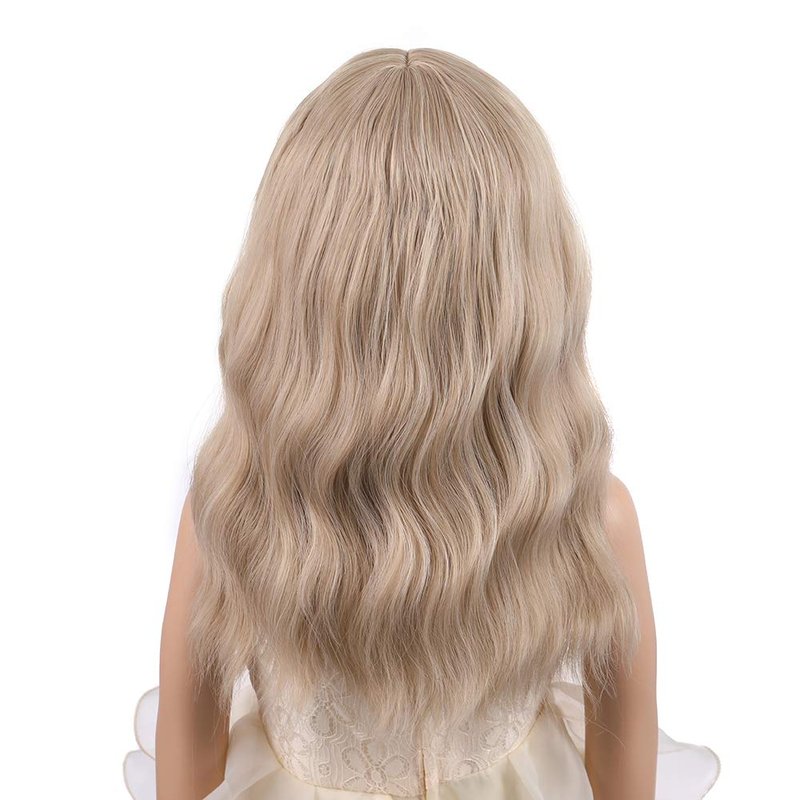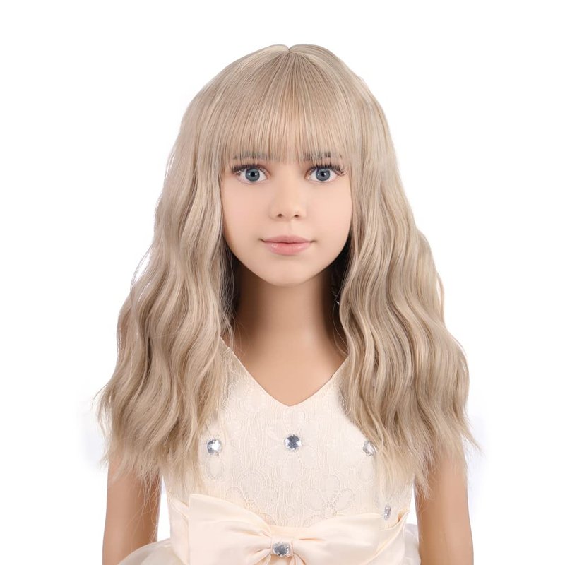 PATTNIUM Blonde Wig Kids Child Wig Short Wavy Wig with Bangs Flaxen Blonde Wig Synthetic Girls Wig Cosplay Halloween Party Costume Wig (Flaxen Blonde)