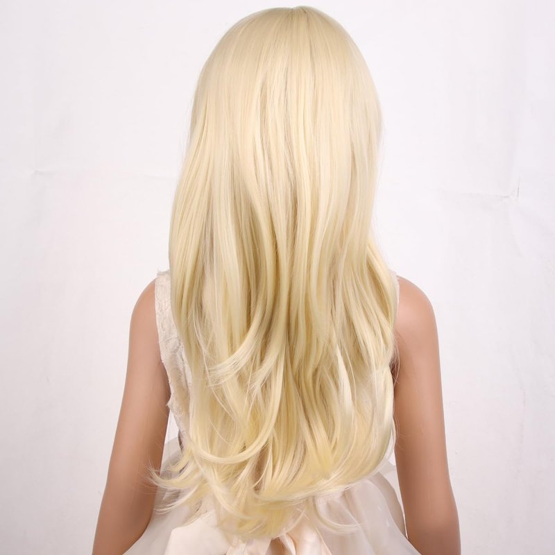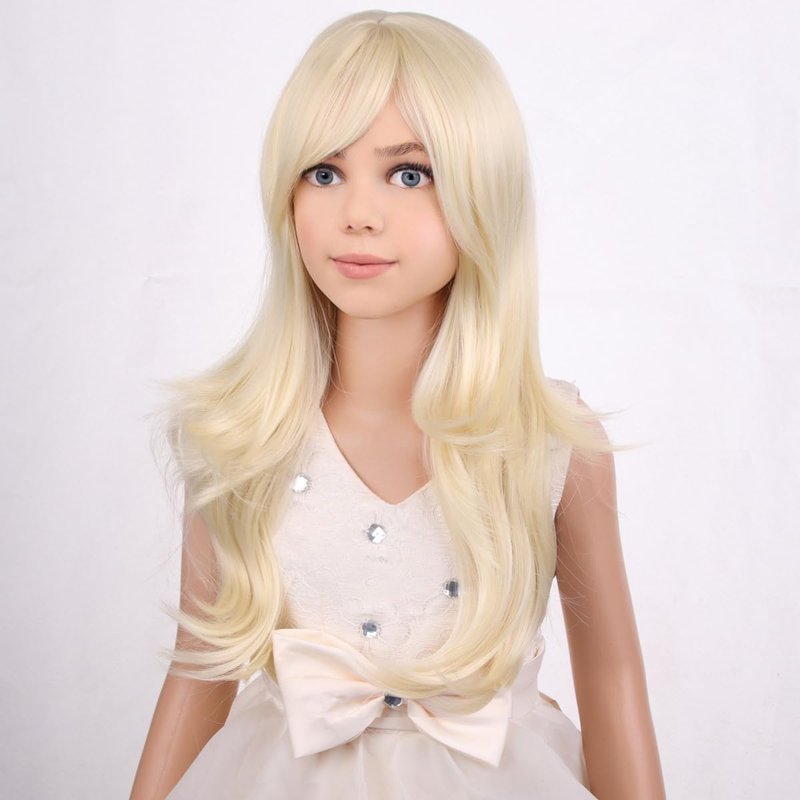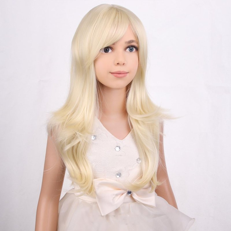 PATTNIUM Kids Girls Blonde Wig Long Wavy Light Blonde Wig for Kids Child Blonde Long Wig with Bangs Synthetic Wig with Wig Cap