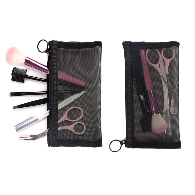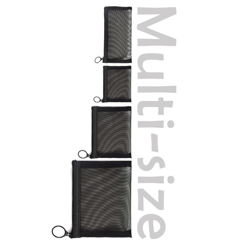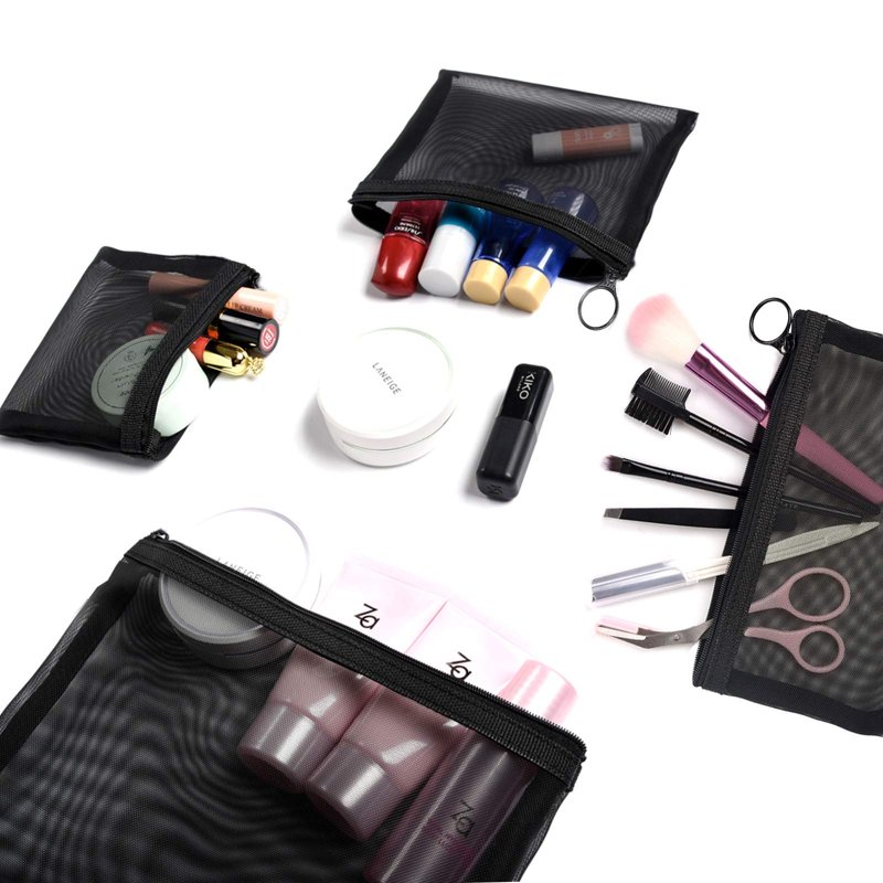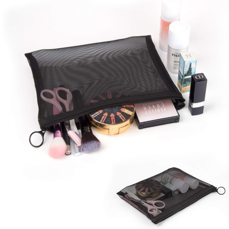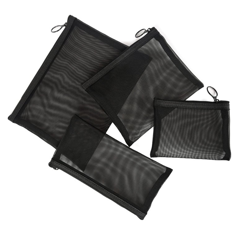 patu Zipper Mesh Bags, Pack of 4 (S/M/L & Pencil Pouch), Beauty Makeup Cosmetic Accessories Organizer, Travel Toiletry Kit Set Storage Case, Black