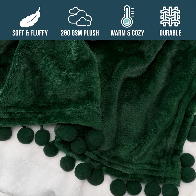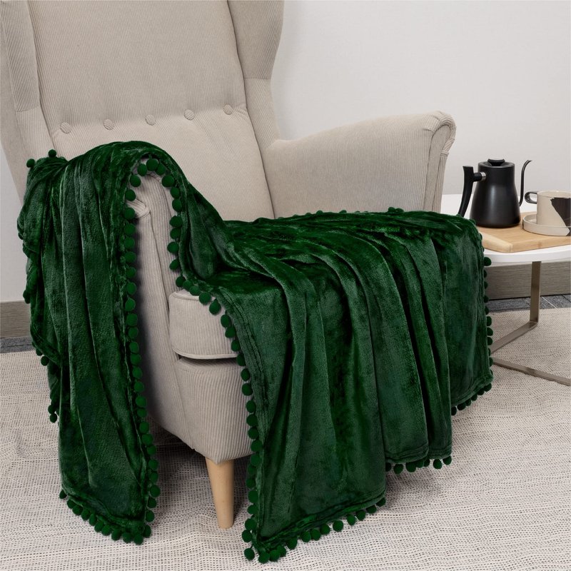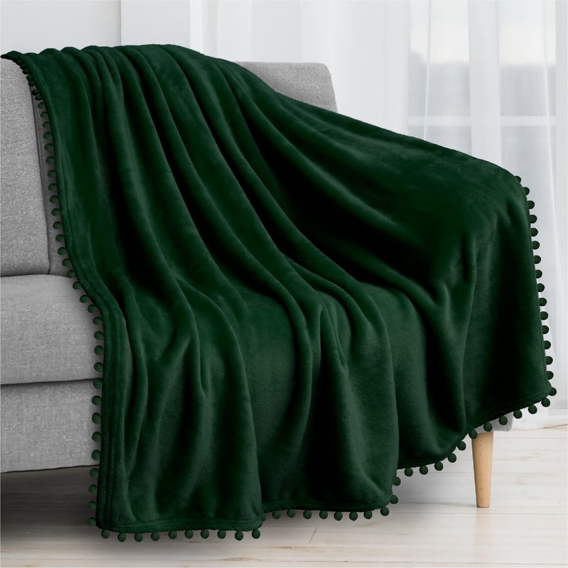 - POM POM EMERALD GREEN FLEECE BLANKET: Made of 260 GSM premium microfleece polyester, this PAVILIA twin size blanket with pompom is super soft, plush and fluffy. Perfect for all year long, the flannel blanket is versatile and lightweight to keep you comfortable in spring and summer and warm enough as layers during winter and fall. With its ultimate comfort, this microfiber velvet blanket makes a decorative home essential gift for women, men, kids, boys, and girls.