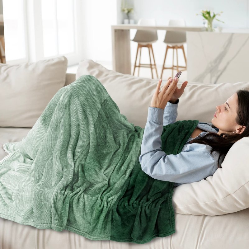 - GREEN OMBRE THROW BLANKET FOR COUCH: Soft warm fleece dark green blanket for couch is made of 100% cozy soft microfiber fleece that is warm yet lightweight for all seasons. Its silky soft texture makes the blanket plush and comfortable as a blanket for the couch while watching tv, cuddling on the sofa, chair, and as a bed cover. Premium comfy throw blankets for bed is great for adults, women, men for using in office, home, indoor, and even outdoor camping.